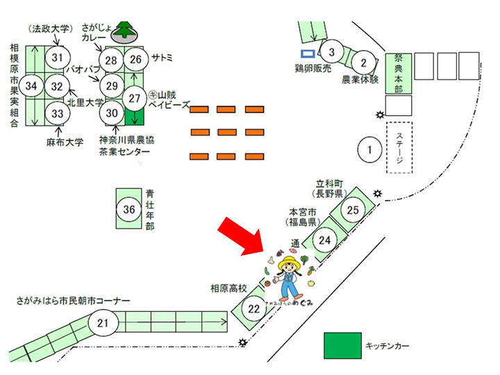 ブースは、ステージの近く下記の位置に出店します。